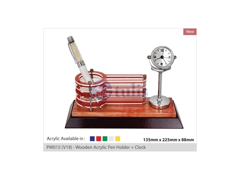 PW015 (V19) - Wooden Acrylic Pen Holder + Clock