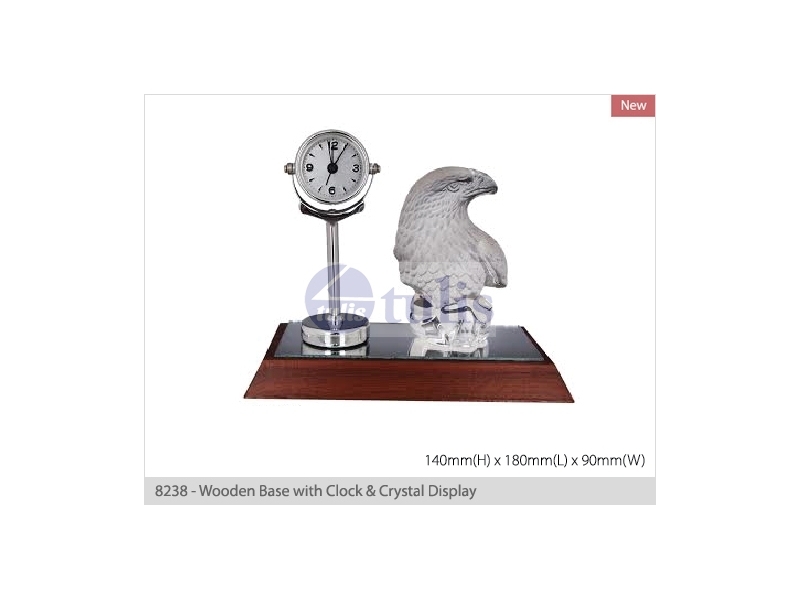 8238 - Wooden Base with Clock & Crystal Display